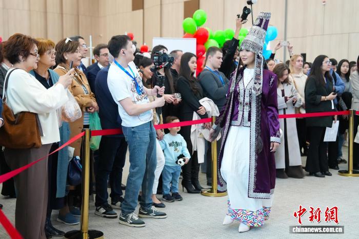 本地时期4月26日,哈萨克斯坦阿斯塔纳,亚洲互相合作取信赖步伐聚会(CICA)文牍处举行秋季慈悲义售举动,多邦驻哈中接机构携特征工艺品及特性食物明相。图为义售举动现场模特停止平易近族古代衣饰显示。中新社记者 单璐 摄