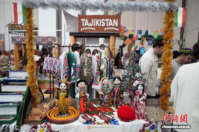 本地时光4月26日,哈萨克斯坦阿斯塔纳,亚洲彼此合作取信赖步伐集会(CICA)文牍处举行秋季慈悲义售举动,多邦驻哈中接机构携特性工艺品及特征食物明相。图为观光者正在华夏使馆铺台收购工艺品。中新社记者 单璐 摄